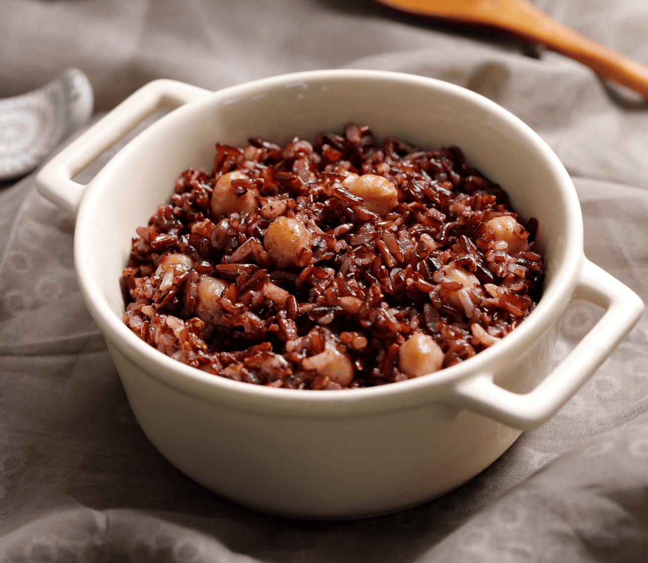 Vo sạch gạo lứt, thêm chút muối, trộn cùng đậu đỏ nếu thích