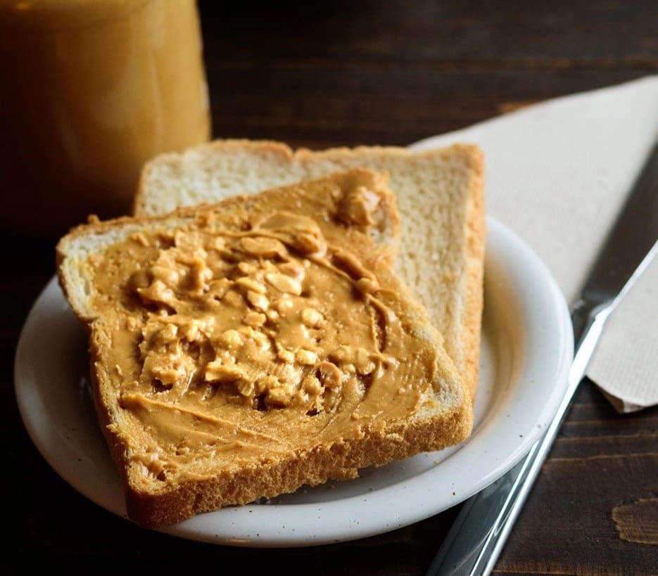 Món ăn: Bánh mì nướng, bơ đậu phộng, hạt dinh dưỡng