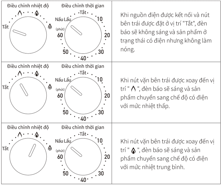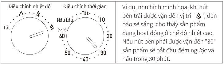Nồi sẽ dừng hoạt động khi một trong hai nút được vặn đến vị trí "Tắt".