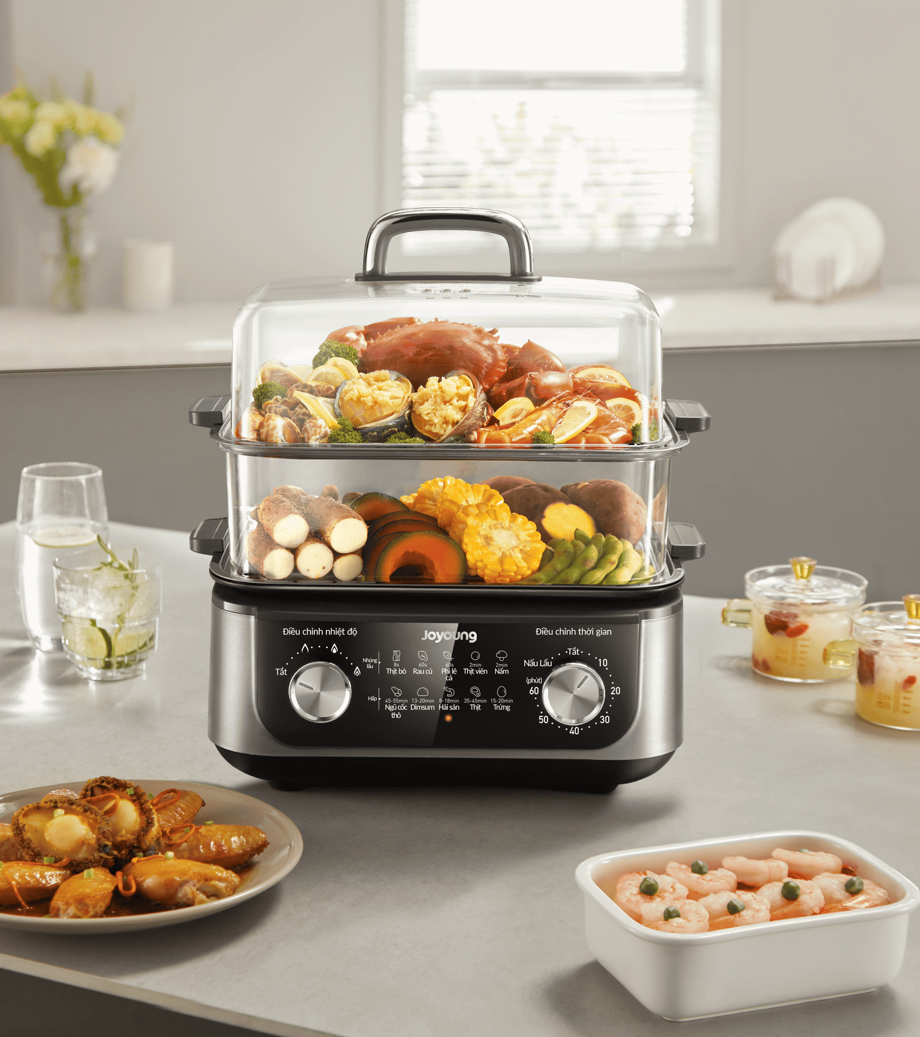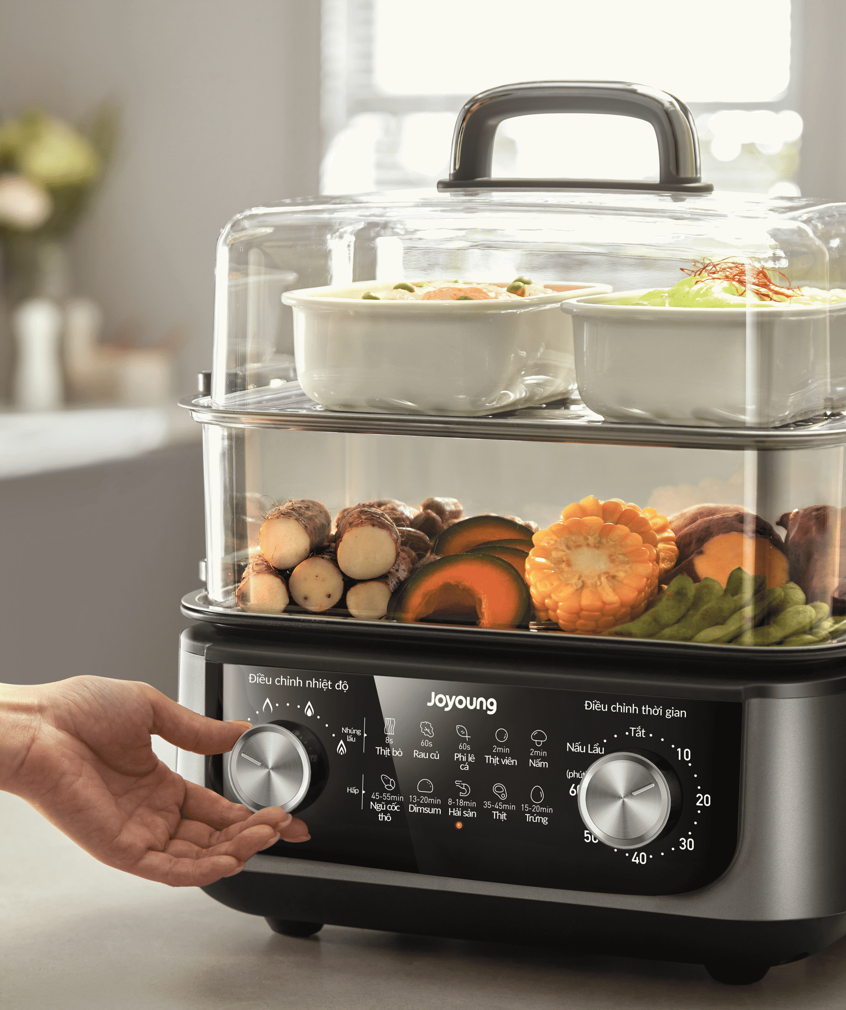 Tiết kiệm không gian bếp: Thay vì phải mua hai thiết bị lẩu - hấp riêng biệt, bạn chỉ cần một chiếc nồi đa năng Joyoung.