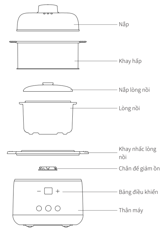 Bước 3: Sau khi đổ nước vào hộc chứa đến mức nước đề xuất, lần lượt đặt khay nhấc nồi sứ, nồi sứ và nắp nồi vào.