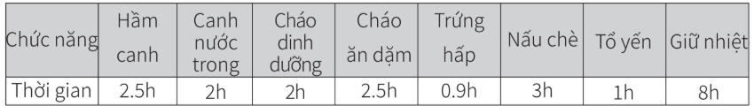 Thời gian giữ nhiệt tối đa là 8 giờ, quá 8 giờ sẽ chuyển sang chế độ chờ.