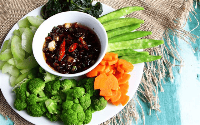Rau luộc thập cẩm chấm kho quẹt