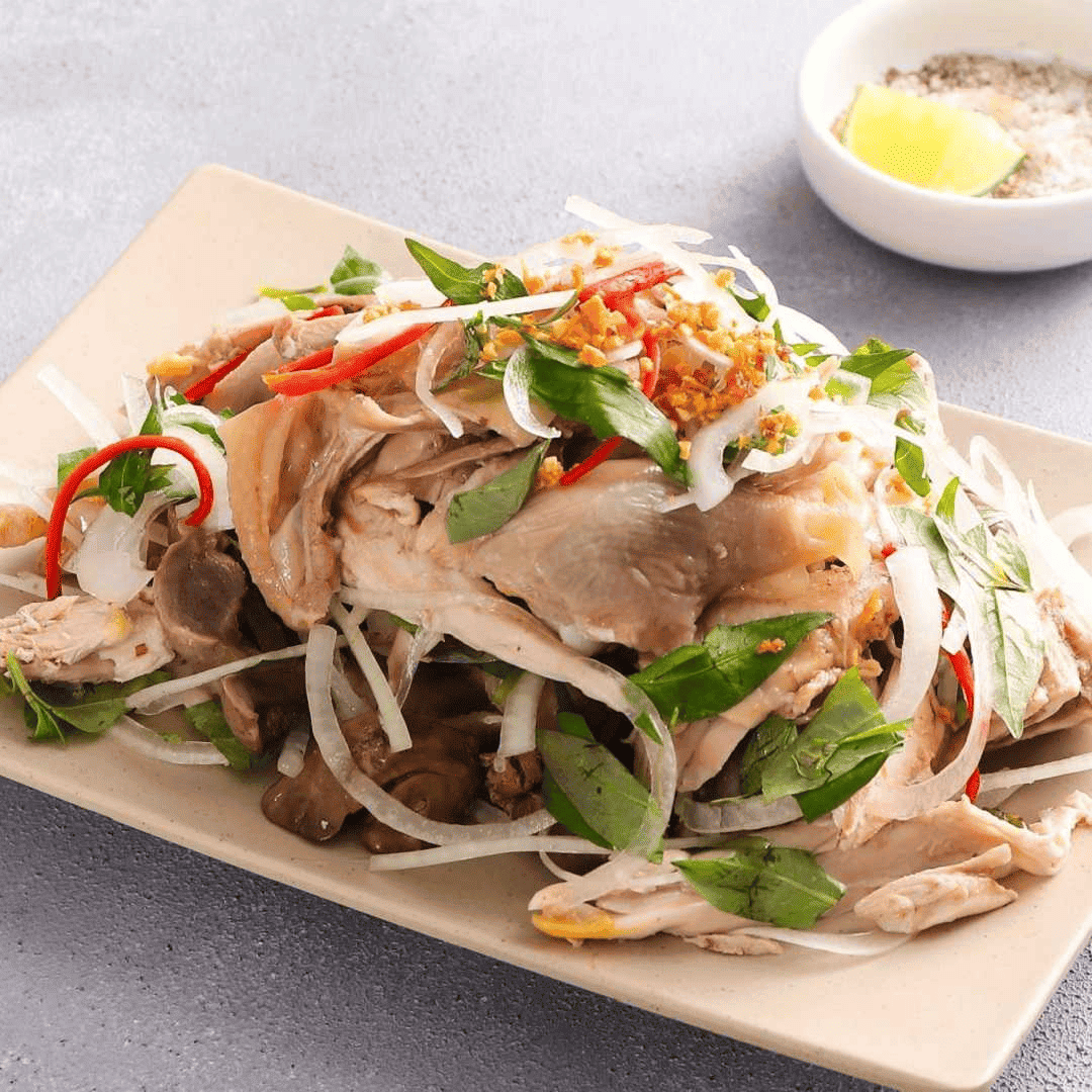 Gỏi gà thanh nhẹ, chua chua ngọt ngọt, là món giúp kích thích vị giác và khiến bữa cơm thêm phần cân bằng.
