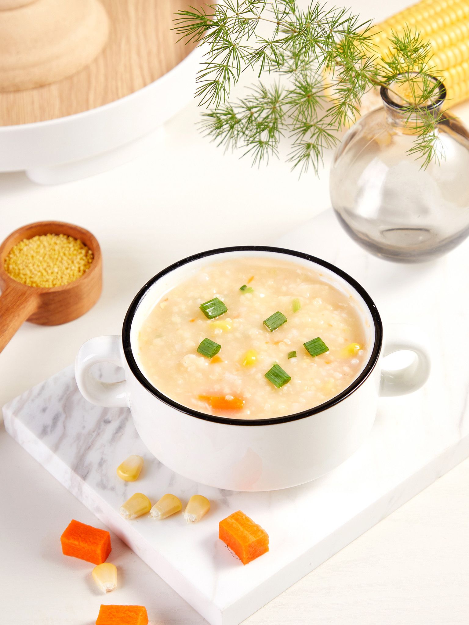 Nhấn nhẹ nút "Bắt đầu/Hủy bỏ", sau khi chế biến xong, đổ cháo ra bát, thêm muối và hành lá rồi trộn đều để thưởng thức.