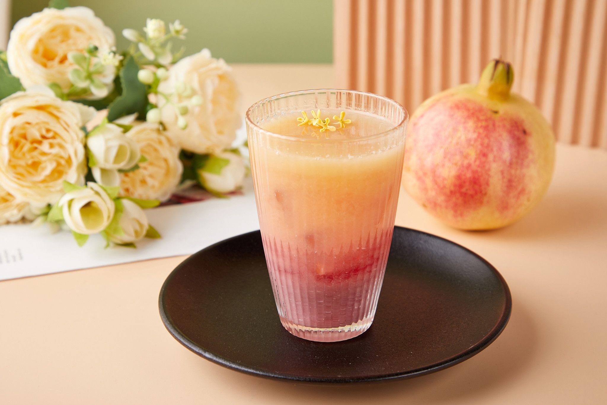 Tách hạt lựu. Gọt vỏ cam, bỏ hạt, cắt thành miếng.
