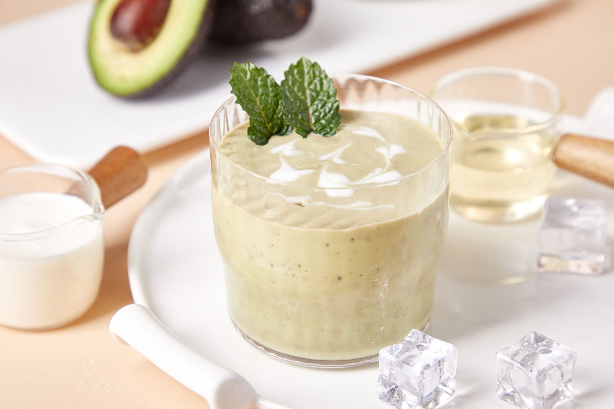 Chọn trái bơ chín, lấy phần thịt bơ cho vào cốc, sau đó cho thêm sữa chua, đá viên và mật ong.