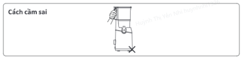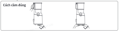 Cách cầm sai: Không cầm trực tiếp tay cầm của ống tiếp nguyên liệu có thể làm rơi thân máy trong khi di chuyển dẫn đến hư hỏng.
