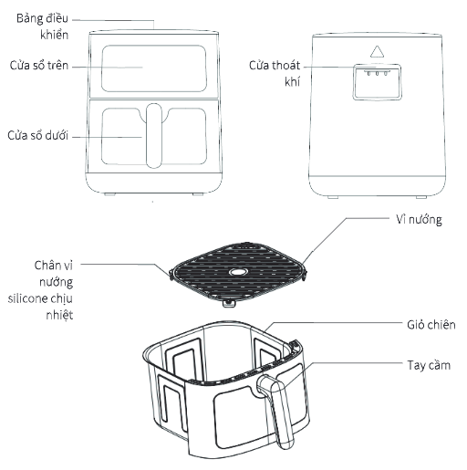 | Giỏ chiên | Dùng để đặt vỉ nướng |