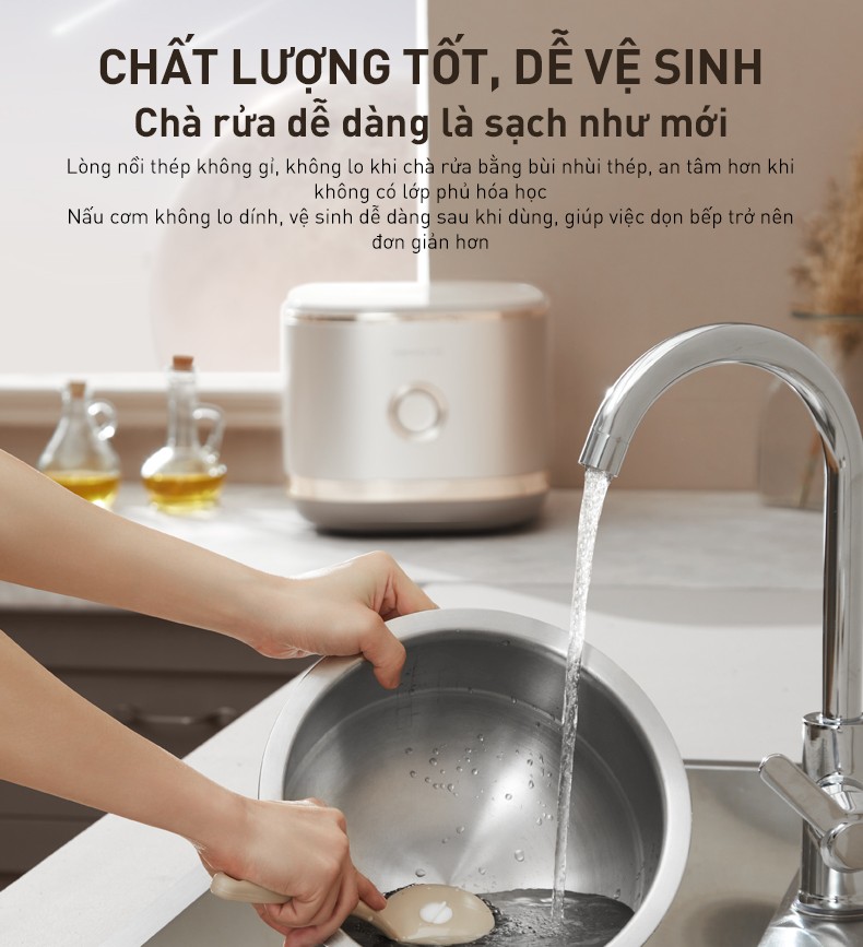 Trong quá trình sử dụng sản phẩm, do chất lượng nước, nhiệt độ cao và các yếu tố khác, bề mặt lòng nồi có thể xuất hiện cặn, đốm trắng, đổi màu nhẹ và các hiện tượng khác. Đây là hiện tượng hoàn toàn bình thường và không ảnh hưởng đến hiệu quả sử dụng