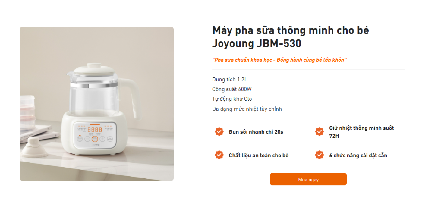 Với thiết kế hiện đại cùng loạt tính năng thông minh, Joyoung JBM-530 không chỉ là một chiếc máy pha sữa mà còn là người bạn đồng hành tin cậy trong hành trình chăm sóc bé yêu.
