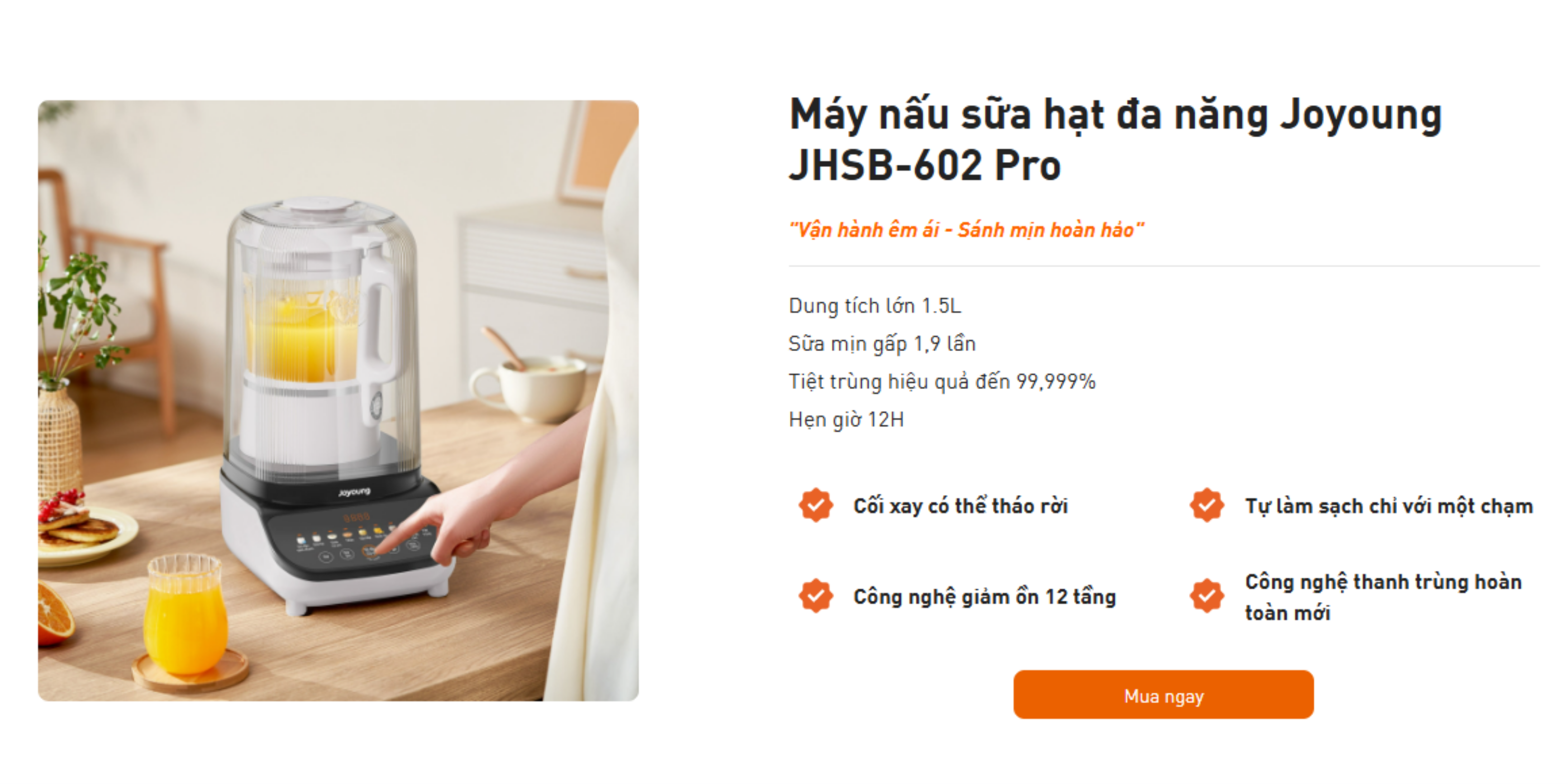 Vận hành êm ái: Máy nấu sữa hạt chống ồn tốt nhất với công nghệ giảm ồn 12 tầng giúp máy vận hành êm ái, hạn chế tiếng ồn khi xay nấu