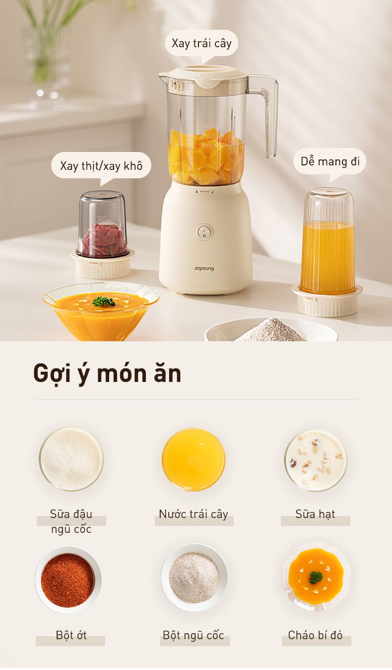 Khi mua máy xay sinh tố Joyoung JFB-621, khách hàng sẽ nhận được 3 cối xay với các chức năng như: