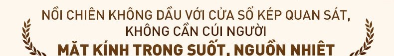 Công nghệ làm nóng luồng khí kép: Trang bị hệ thống 2 cửa hút gió đối lưu, giúp tăng gấp đôi lượng khí nóng luân chuyển trong khoang nồi. Nhờ đó, nhiệt được phân bổ đều và ổn định, giúp thực phẩm chín vàng giòn đồng nhất mà không cần lật trở thủ công.