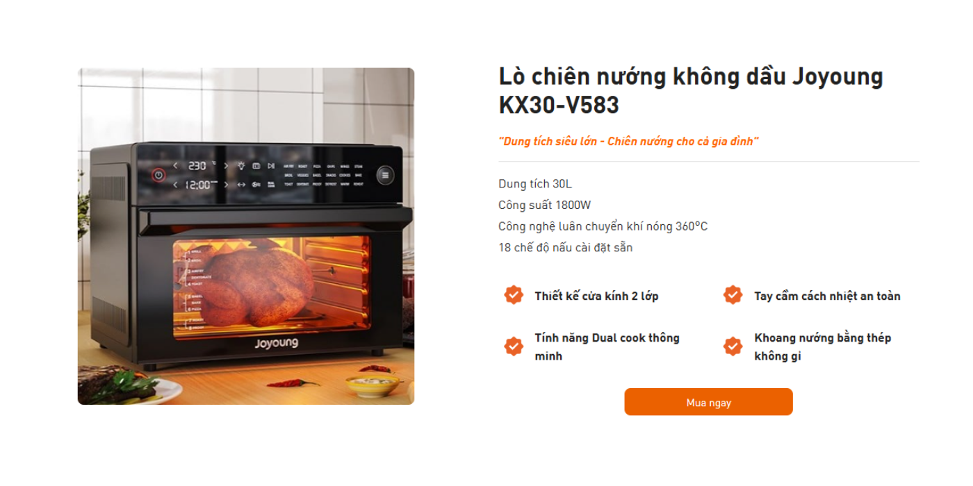 Những điểm nổi bật của lò chiên nướng Joyoung KX30-V583 gồm: