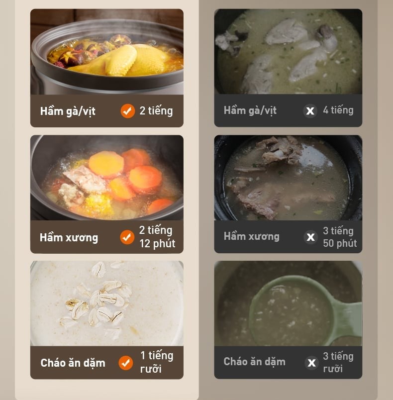 | Hấp - hầm cùng 1 lúc | ❌ | ✅ | ✅ | ✅ | ❌ | ❌ |