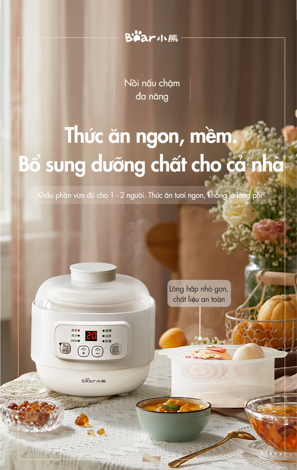Hơn thế nữa, nồi nấu chậm rất đa năng không chỉ dùng để nấu cháo mà còn có thể ninh xương, hầm rau củ hay om thịt – hỗ trợ mẹ chuẩn bị đa dạng món ăn giàu dinh dưỡng không chỉ cho bé mà cho cả gia đình.