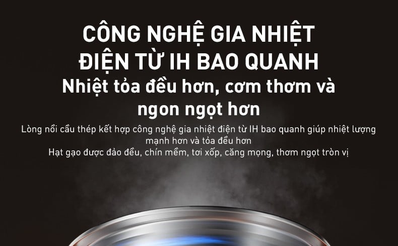 Công nghệ gia nhiệt IH & kiểm soát dòng khí lạnh: Giúp hạt cơm chín đều, mềm ngọt và chống dính hiệu quả