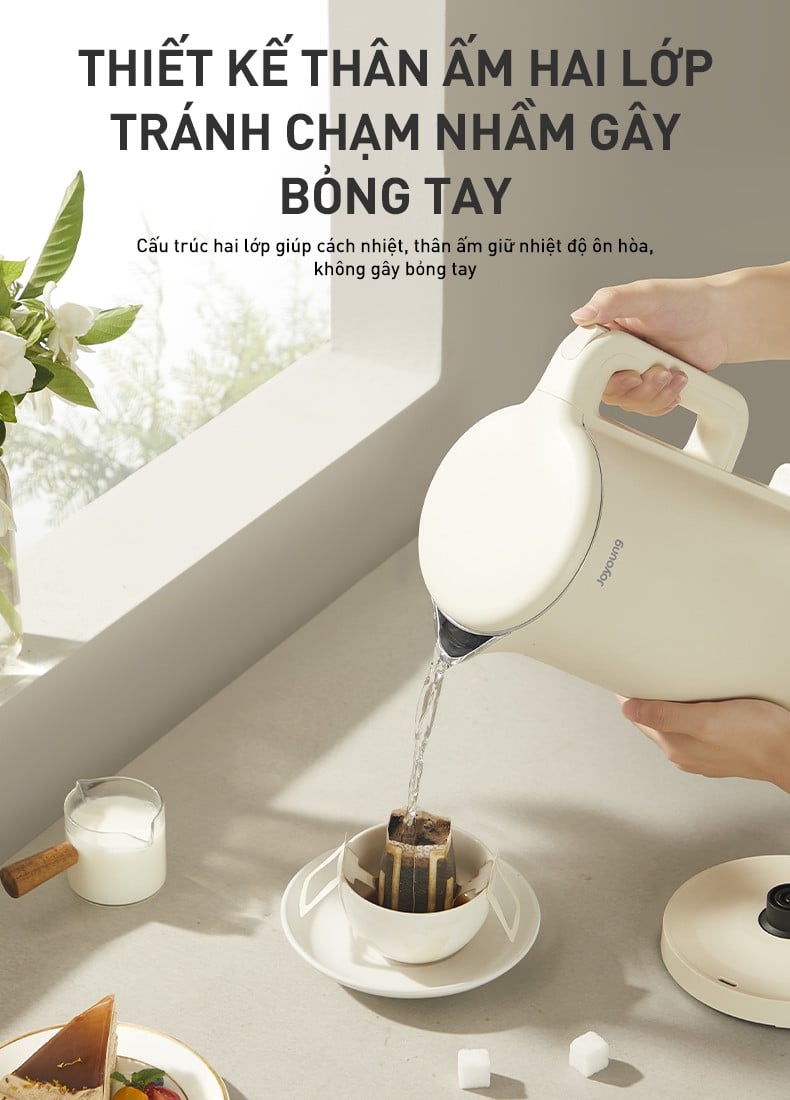 Thiết kế thân ấm hai lớp tránh gây bỏng tay