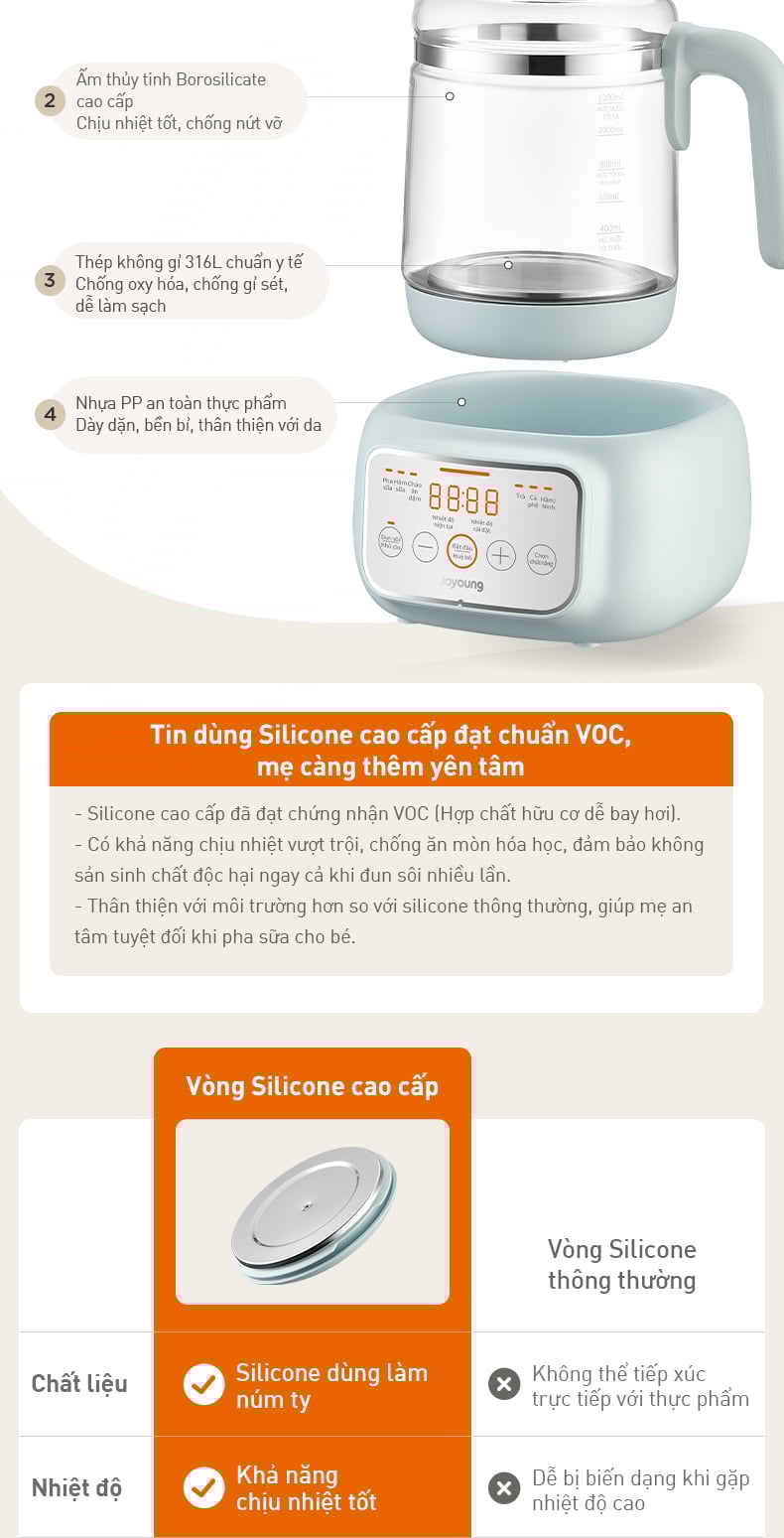 - Gioăng silicon cao cấp đạt chuẩn VOC: Loại silicon có khả năng chịu nhiệt cao, chống ăn mòn hiệu quả và đặc biệt không sinh ra chất độc hại khi đun sôi nhiều lần.